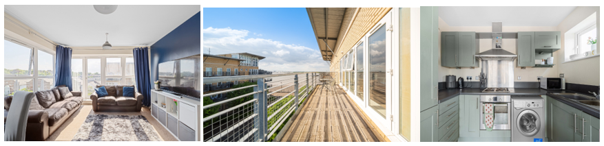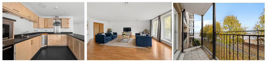 Nestled on the third floor of the highly sought-after Portland Place development in Greenhithe’s idyllic Ingress Park, this beautifully presented 2-bedroom apartment offers the perfect blend of style, space, and convenience. Boasting 775 sq ft (72.0 sq m) of well-designed living space, the apartment is flooded with natural light thanks to its dual aspect layout and large windows throughout.